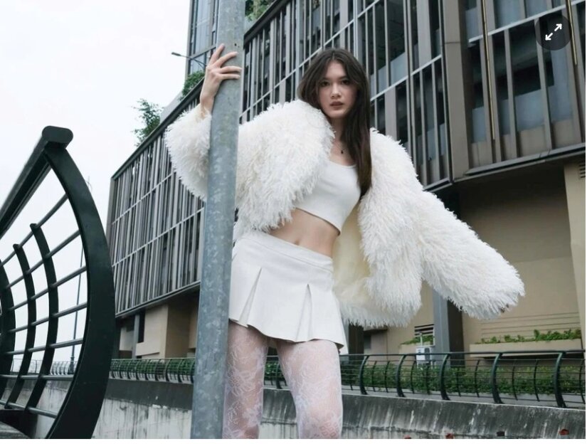 Thanh Giang diện áo crop top, chân váy ngắn cùng áo khoác lông, khoe khéo chiều cao 1,77 m cùng vóc dáng thanh mảnh, cân đối. Cô gái mang hai dòng máu Việt - Nga được người theo dõi nhận xét sở hữu nét đẹp lai hài hòa giống người anh trai nổi tiếng.