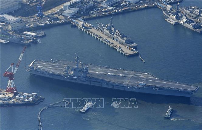 Tàu sân bay chạy bằng năng lượng hạt nhân George Washington của Mỹ. Ảnh tư liệu: Kyodo