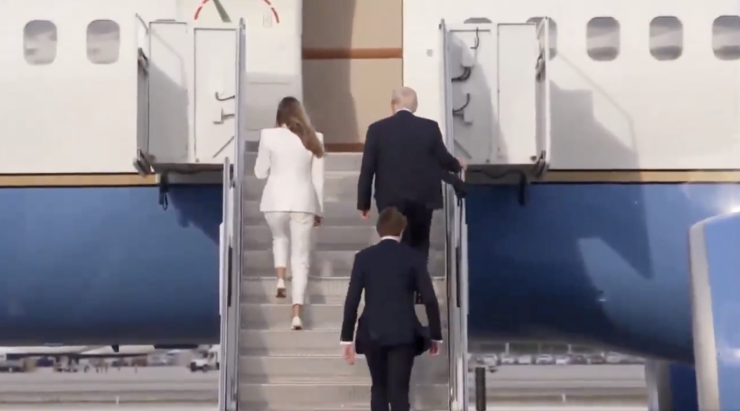 Tổng thống đắc cử Trump, Đệ nhất phu nhân Melania và Barron trở về Washington, DC trên chuyên cơ Không lực Một trước lễ nhậm chức lịch sO