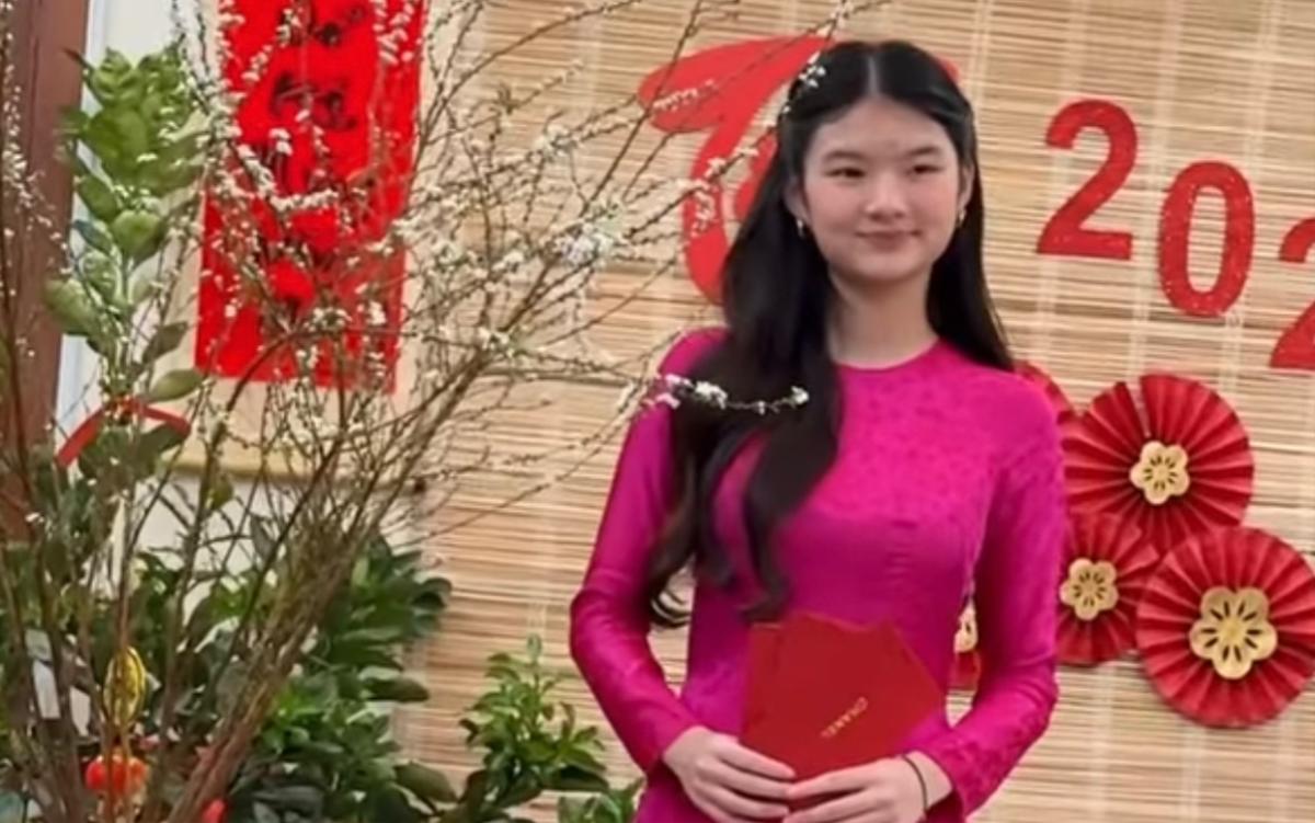 Con gái Trương Ngọc Ánh diện áo dài đón Tết. Ảnh: Chụp màn hình