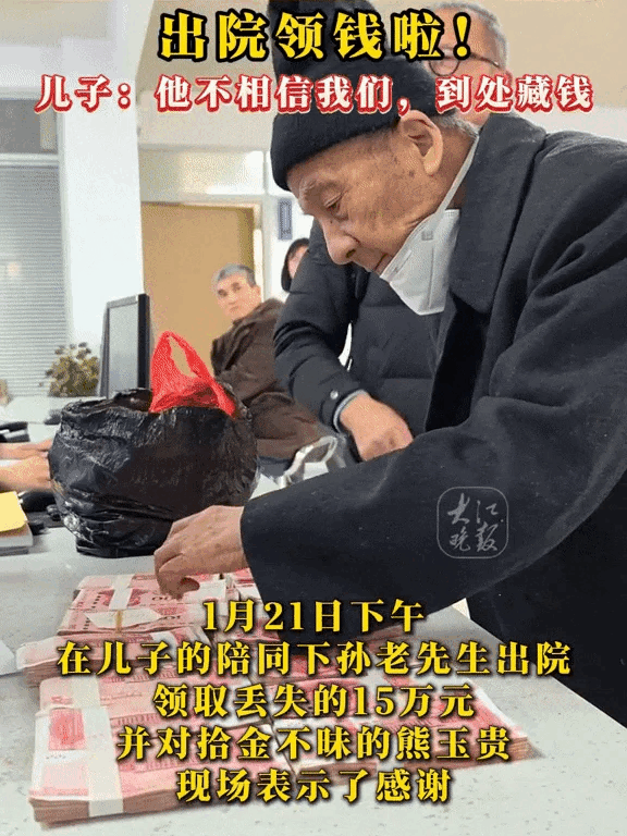 Truyền thông địa phương đưa tin, ngay sau khi được xuất viện hôm 21/1, cụ ông đã tới đồn cảnh sát và nhận lại đầy đủ số tiền.