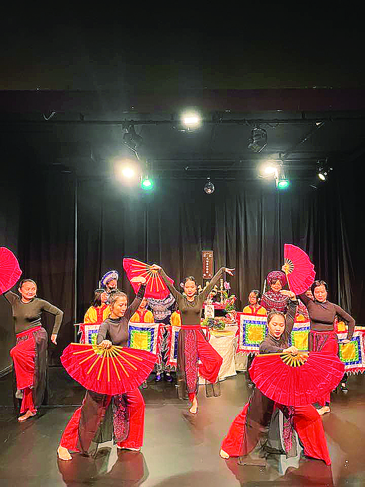 Nghệ sĩ Việt biểu diễn múa quạt nhân dịp giỗ tổ nghề kịch tại ngoại ô Paris (Pháp). Ảnh: T.T.D