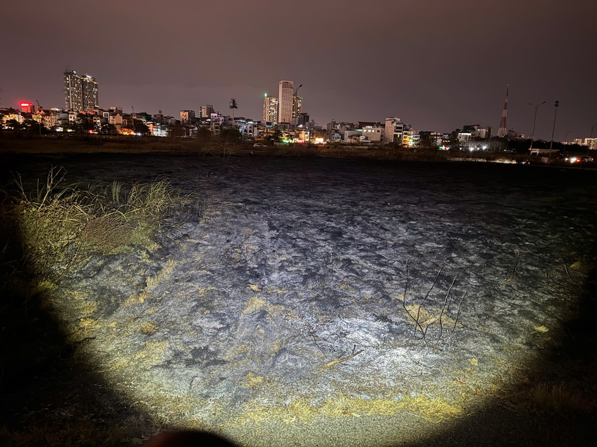 Drone rơi làm cháy đám cỏ bên trong bãi đất trống thuộc khuôn viên trường đua F1 tối 26 tháng Giêng. (Hình: Tuổi Trẻ)