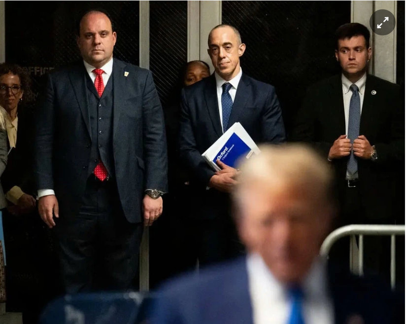 Emil Bove (thứ hai từ phải sang, cà-vạt xanh), quan chức cấp cao Bộ Tư pháp, đứng sau quyết định sa thải hàng loạt công tố viên Washington. Ảnh: New York Times.