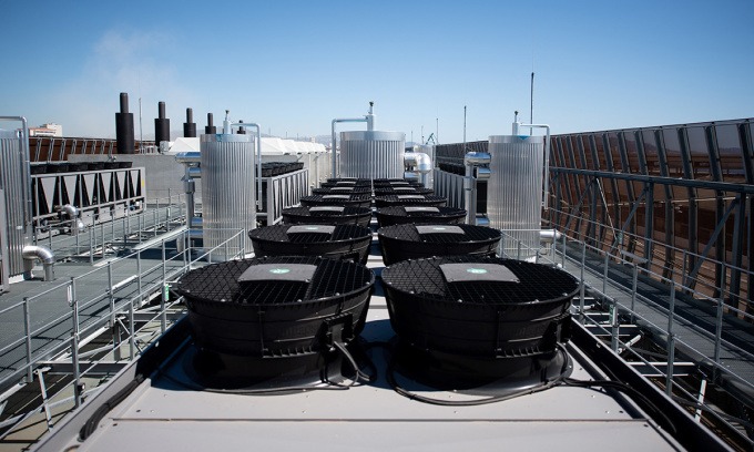 Các thiết bị làm mát trên mái của trung tâm dữ liệu MRS3 Interxion, Pháp, năm 2020. Ảnh: Clement Mahoudeau/AFP