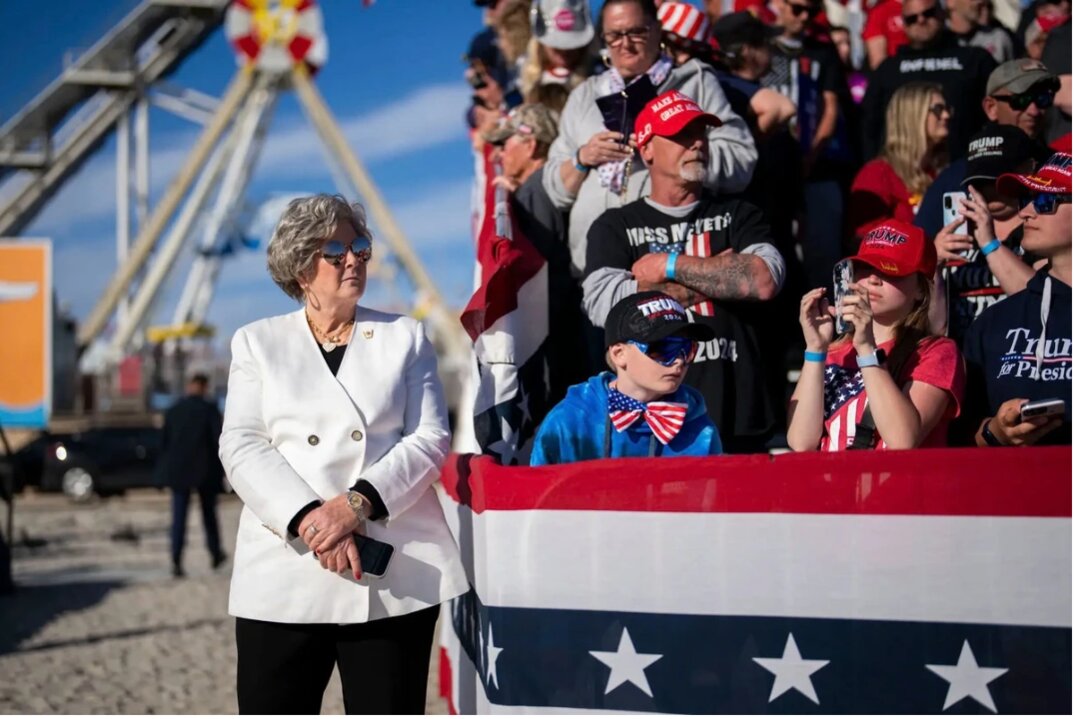 Chánh văn pḥng Nhà Trắng Susie Wiles (áo trắng). Ảnh: New York Times.