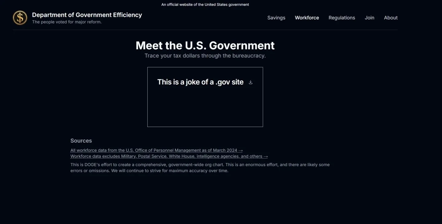 "Đây là một trang .gov đùa giỡn" là thông điệp được để lại trên một trang, nhưng sau đó đã nhanh chóng bị gỡ bỏ xuống.