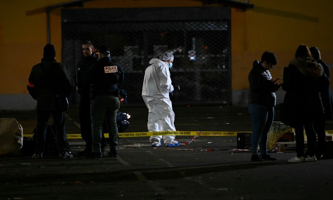 Cảnh sát và nhân viên pháp y tại hiện trường vụ tấn công bằng dao ở thành phố Mulhouse hôm 22/2. Ảnh: AFP