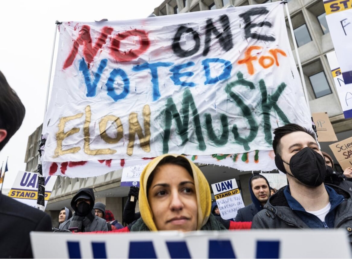 Một cuộc tuần hành ở Washington phản đối tỉ phú Elon Musk trong việc cắt giảm việc làm. Ảnh: EFE