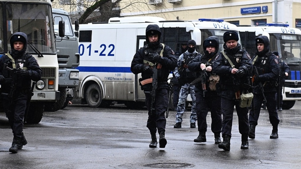 Cảnh sát Nga tuần tra tại Moskva, ngày 24/3/2024, sau vụ tấn công khủng bố ở nhà hát Crocus. Ảnh: RIA