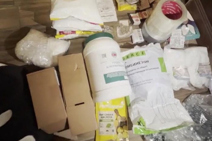 Các chất hóa học để chế tạo thuốc nổ được FSB thu giữ. Ảnh: FSB/ RT