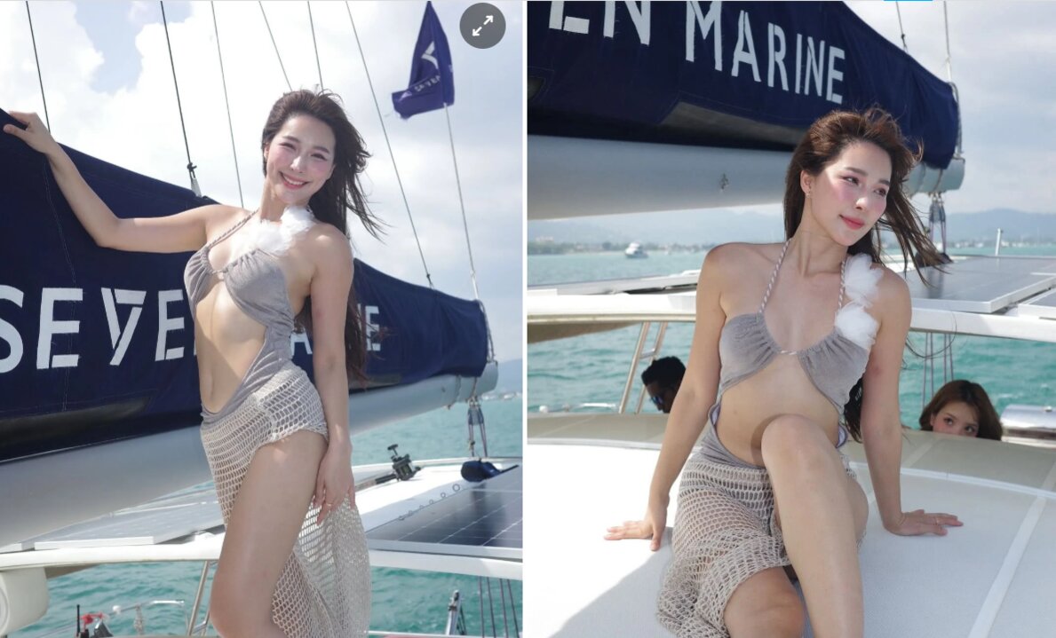 Junji Junjia, bạn gái 11 năm của tài tử Thái Lan Mario Maurer vừa chia sẻ loạt ảnh gợi cảm trong chuyến du lịch biển cùng bạn bè. Nữ diễn viên sinh năm 1991 trung thành với phong cách quyến rũ, táo bạo mà cô theo đuổi nhiều năm qua. Đời thường, Junji Junjia cũng chọn những mẫu trang phục ngắn, khoét sâu hoặc ôm sát khoe lợi thế cơ thể với vóc dáng cân đối.