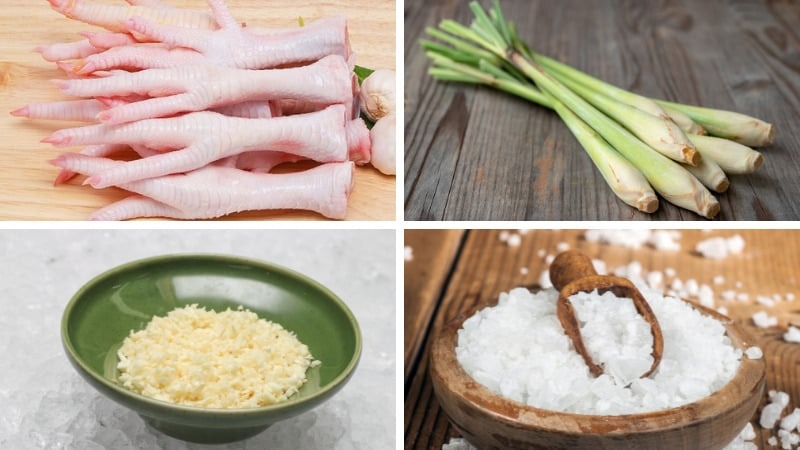 Chân gà rút bạn rửa sạch với nước muối loãng, sau đó rửa lại với nước sạch và để ráo.