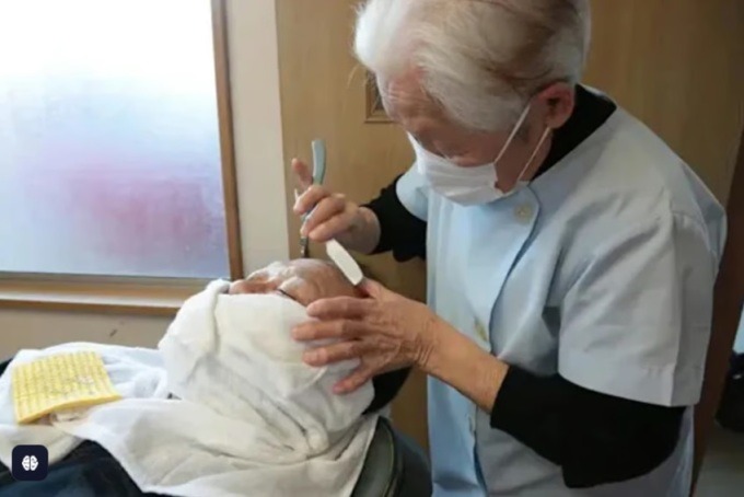 Bà Hakoishi cắt tóc cho khách ở tiệm. Ảnh: Weixin