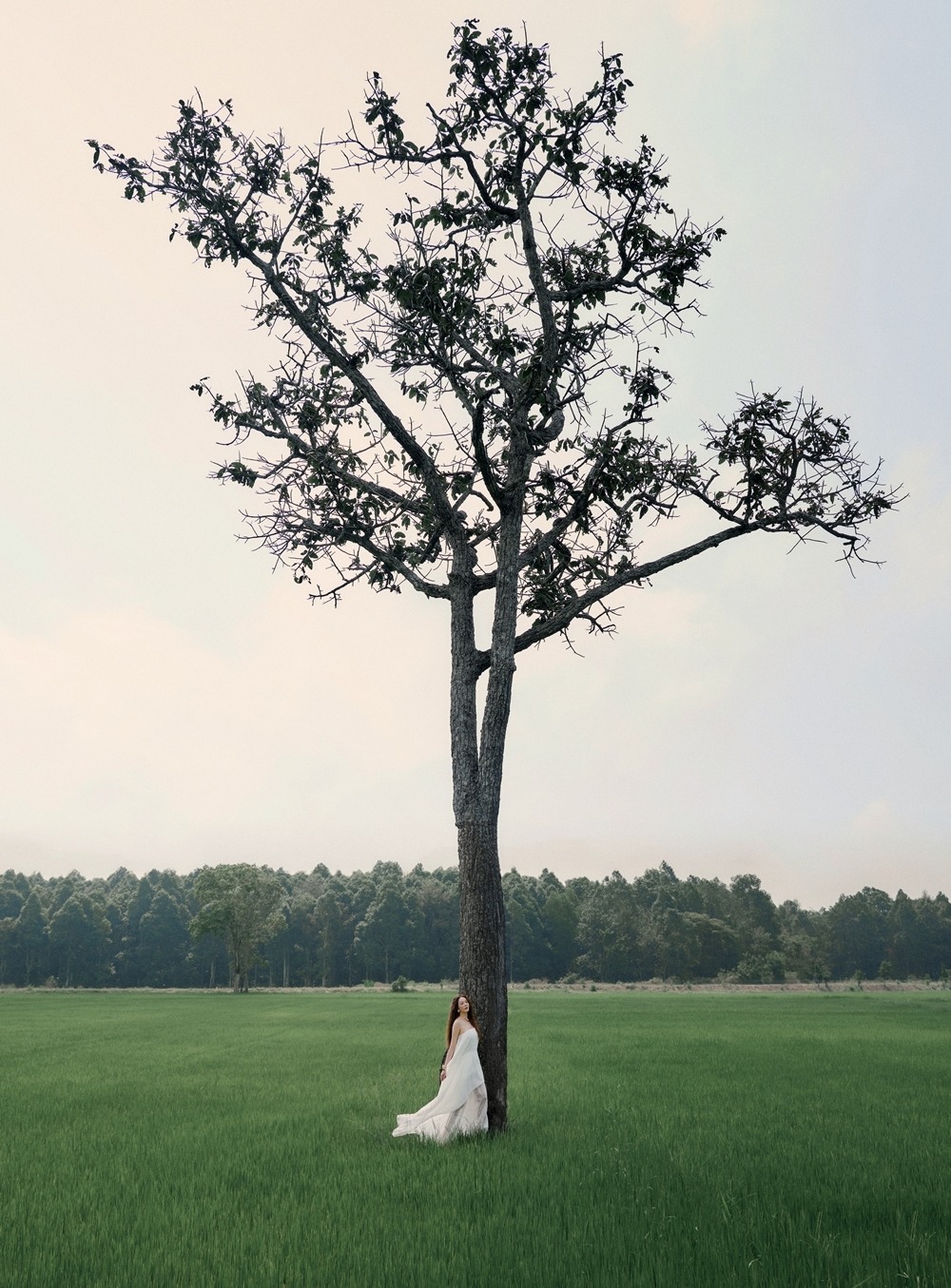 Lý Nhã Kỳ nảy ý tưởng thực hiện bộ ảnh trong lần ghé thăm Vườn Quốc gia Nam Cát Tiên, Đồng Nai. Khi đi qua những cánh đồng, cô nói ấn tượng với màu xanh của lúa xen lẫn những hàng cây lớn.