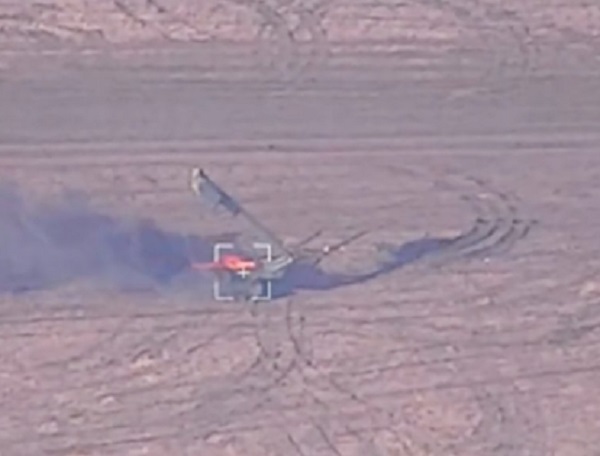 Lực lượng Ukraine thiêu rụi radar trị giá 40 triệu USD của Nga, làm tê liệt khả năng dẫn đường cho tên lửa đất đối không của đối phương. Ảnh chụp màn hình từ video do Lữ đoàn Chornyi Lis của quân đội Ukraine công bố. Nguồn Defence.