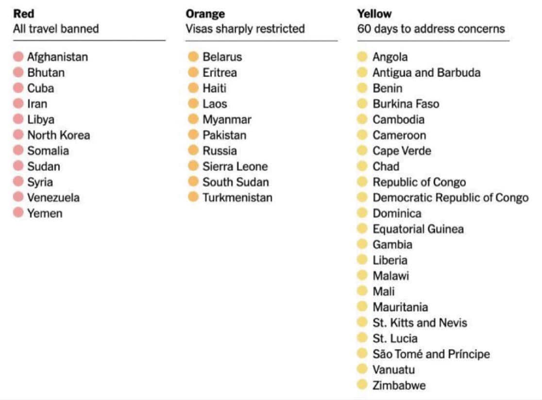 Quy định hạn chế nhập cảnh vào Hoa Kỳ đối với một số quốc gia.