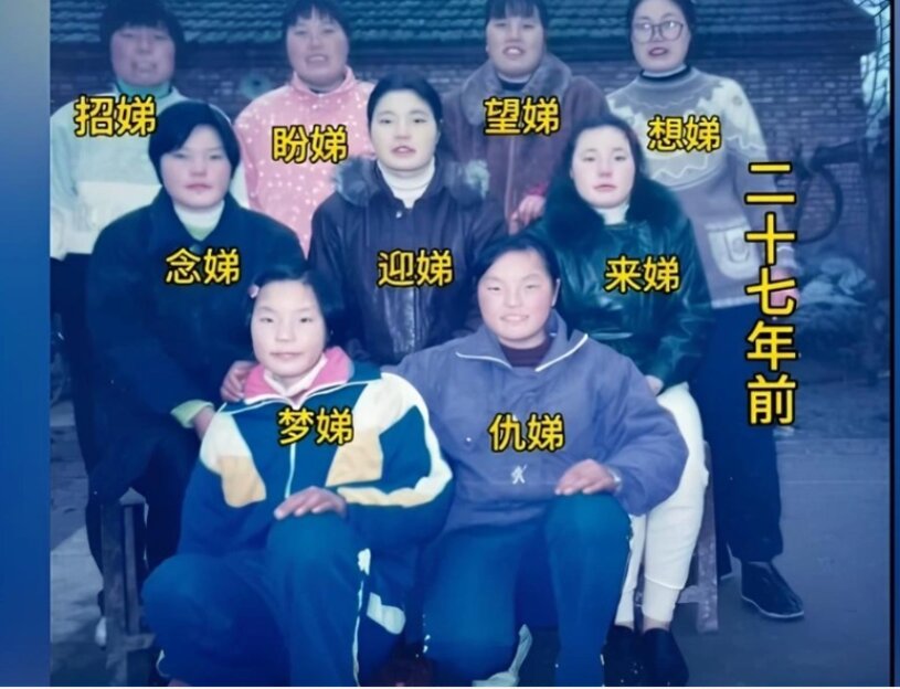 Cặp vợ chồng ở Hoài An, tỉnh Giang Tô sinh 9 người con gái trong 20 năm, tất cả đều được đặt tên "Đệ" (em trai) với mong ước đứa trẻ sinh sau sẽ là con trai.