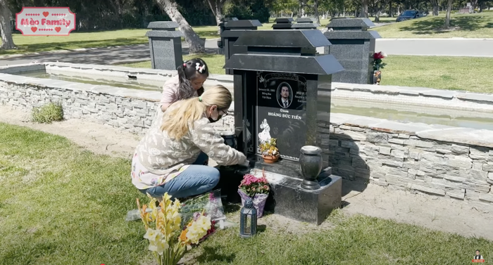 Hoa hậu Bình Phương và con gái ra thăm mộ của cố diễn viên Đức Tiến. (Ảnh: Đức Tiến Offical)