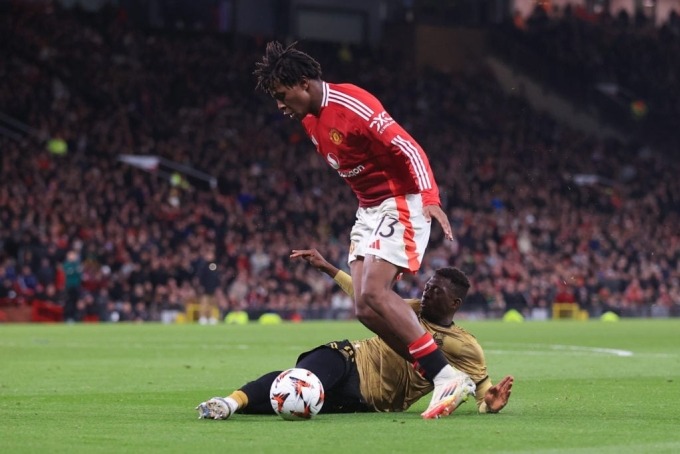 Dorgu (áo đỏ) đi bóng trong trận Man Utd 4-1 Sociedad ở lượt về vòng 1/8 Europa League hôm 13/3. Ảnh: Offside