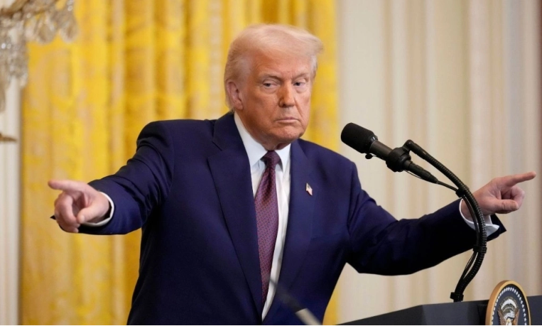 Tổng thống Mỹ Donald Trump trong một cuộc họp báo tại Nhà Trắng hồi tháng hai. Ảnh: AP