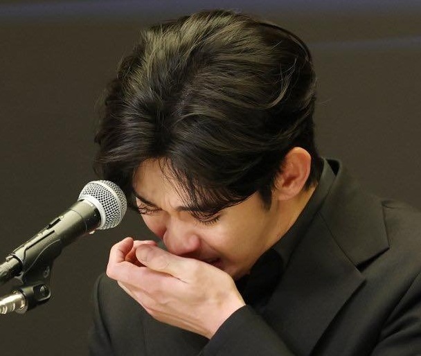 Diễn viên Kim Soo Hyun nhiều lần bật khóc cho biết mong muốn được mọi người hiểu đúng câu chuyện về đời tư của anh. Ảnh: News1