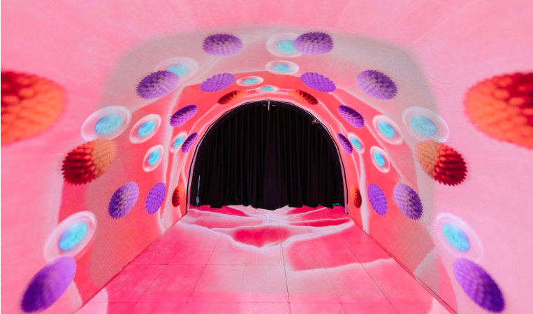 "Hầm mô phỏng đường ruột" ứng dụng công nghệ 360 độ LED tại triển lãm. Ảnh: Duy Phương