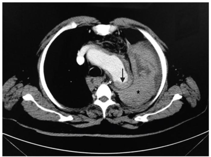 Bệnh nhân bất ngờ hôn mê sau khi hắt hơi. Bác sĩ kiểm tra qua chụp CT xác định vỡ túi phình động mạch chủ khiến người bệnh shock và tử vong ngay sau đó.