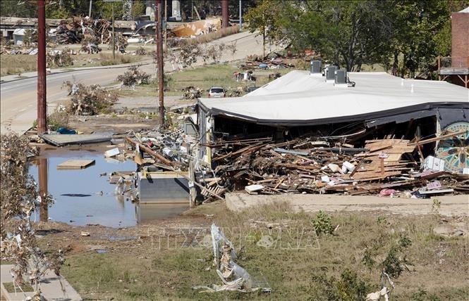 Cảnh đổ nát sau cơn bão tại Asheville, Bắc Carolina, Mỹ, ngày 2/10/2024. Ảnh tư liệu: Kyodo.