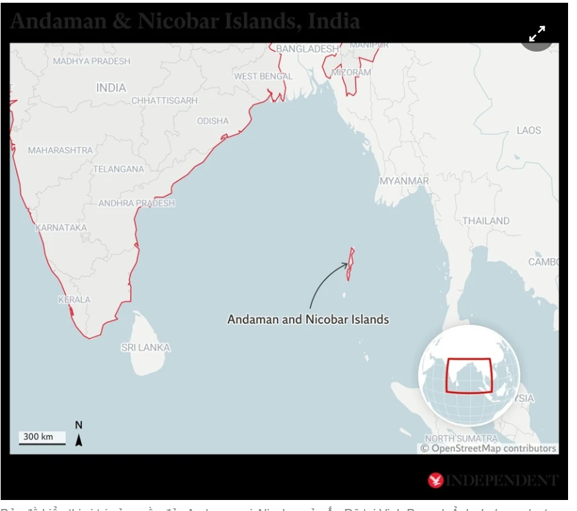 Bản đồ hiển thị vị trí của quần đảo Andaman và Nicobar của Ấn Độ tại Vịnh Bengal. Ảnh: Independent.
