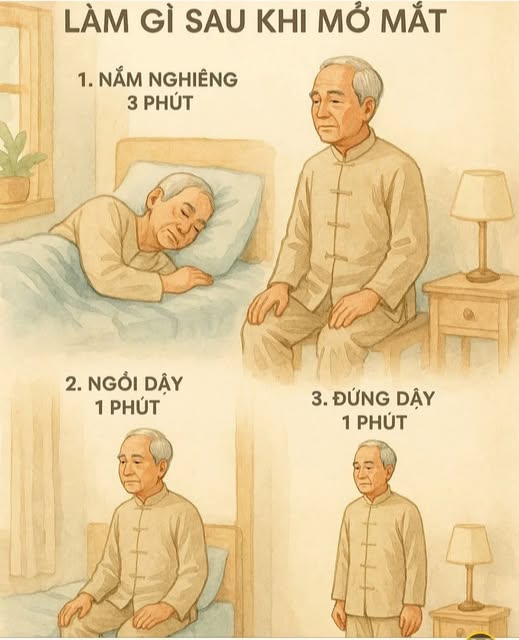 👉 Nếu bạn bật dậy đột ngột – sẽ làm tim “giật mình”, mạch máu co bóp mạnh, dễ dẫn đến nguy cơ cao huyết áp, chóng mặt, thậm chí đột quỵ.