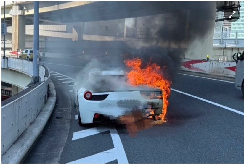 "Tôi nghĩ mình là người duy nhất ở Nhật Bản gặp tình huống như vậy. Tôi đã chi 43 triệu yen (306.000 USD) và những gì tôi nhận lại là bức ảnh này", anh viết trên X, kèm theo là tấm hình chiếc xe đang bốc cháy đỏ rực.