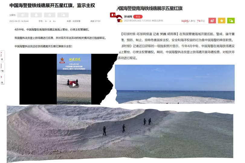 - Đưa Hải cảnh lên đá Hoài Ân thuộc cụm Thị Tứ để căng cờ tuyên bố chủ quyền (thực hiện vào giữa tháng 4, công bố vào ngày 24-25/4). Tít bài trên Tân Hoa Xã: “Hình ảnh độc quyền: Hải cảnh Trung Quốc đổ bộ lên đá Thiết Tuyến và giương cao lá cờ đỏ năm sao để tuyên bố chủ quyền.”