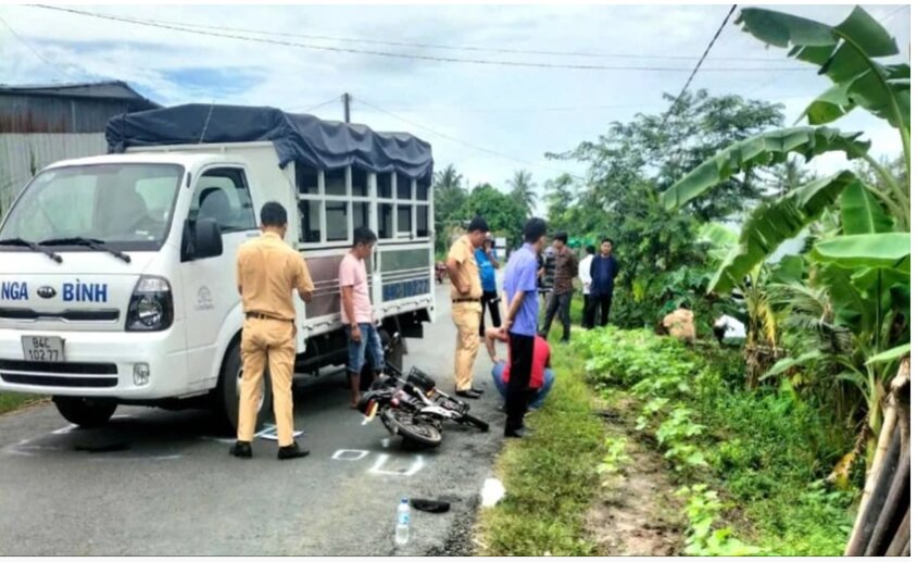 Hiện trường vụ tại nạn giao thông khiến con ông Nguyễn Vĩnh Phúc tử vong. Ảnh: Công an tỉnh Vĩnh Long