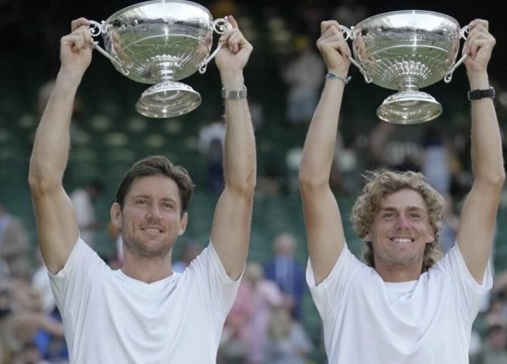 Purcell (phải) mừng danh hiệu đôi nam Wimbledon 2022 cùng Matthew Ebden. Ảnh: Reuters