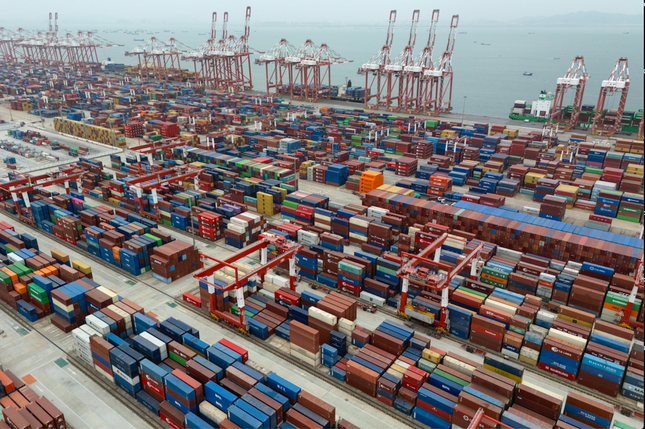 Các container vận chuyển hàng hoá ở cảng Quảng Châu, Trung Quốc, ngày 17/4. (Ảnh: AP)