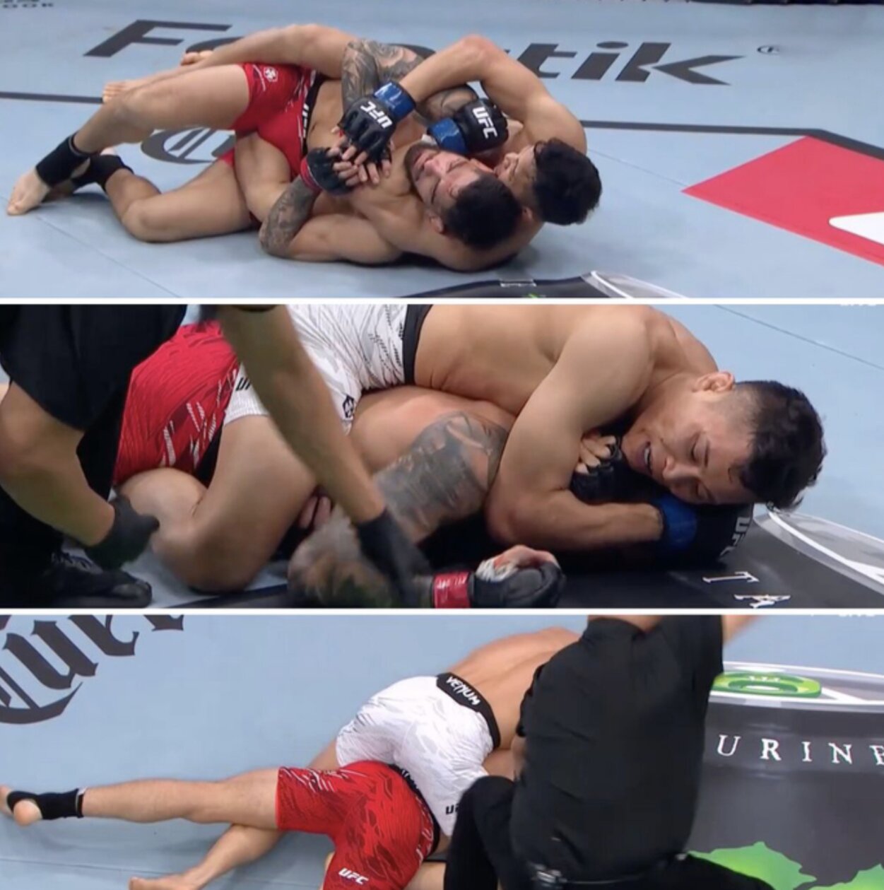Hiệp một, anh áp đảo với các pha takedown, kiểm soát vị trí và khai thác điểm yếu của Bolanos khi để lộ lưng. Sang hiệp hai, dù Bolanos tấn công mạnh, Quang Lê vẫn đưa trận đấu về mặt sàn. Cú khóa cổ từ phía sau hoàn hảo của Quang Lê khiến Bolanos bất tỉnh ở phút 1:54.
