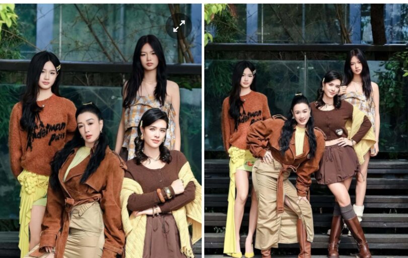 Chung Lệ Đề được khen trẻ trung khi chụp hình cùng 3 con gái. Các ái nữ của diễn viên cũng thu hút sự chú ý với ngoại hình nổi bật.