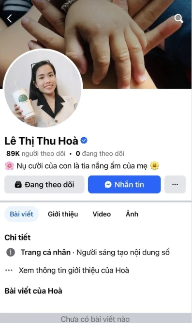 Trang cá nhân có tích xanh của chị Thu Hòa đã được mở lại.