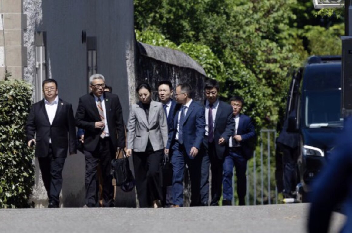 Các thành viên đoàn đàm phán Trung Quốc rời khỏi khu dinh thự ở Thụy Sĩ sau cuộc họp với phái đoàn Mỹ, ngày 10/5. (Ảnh: Reuters)