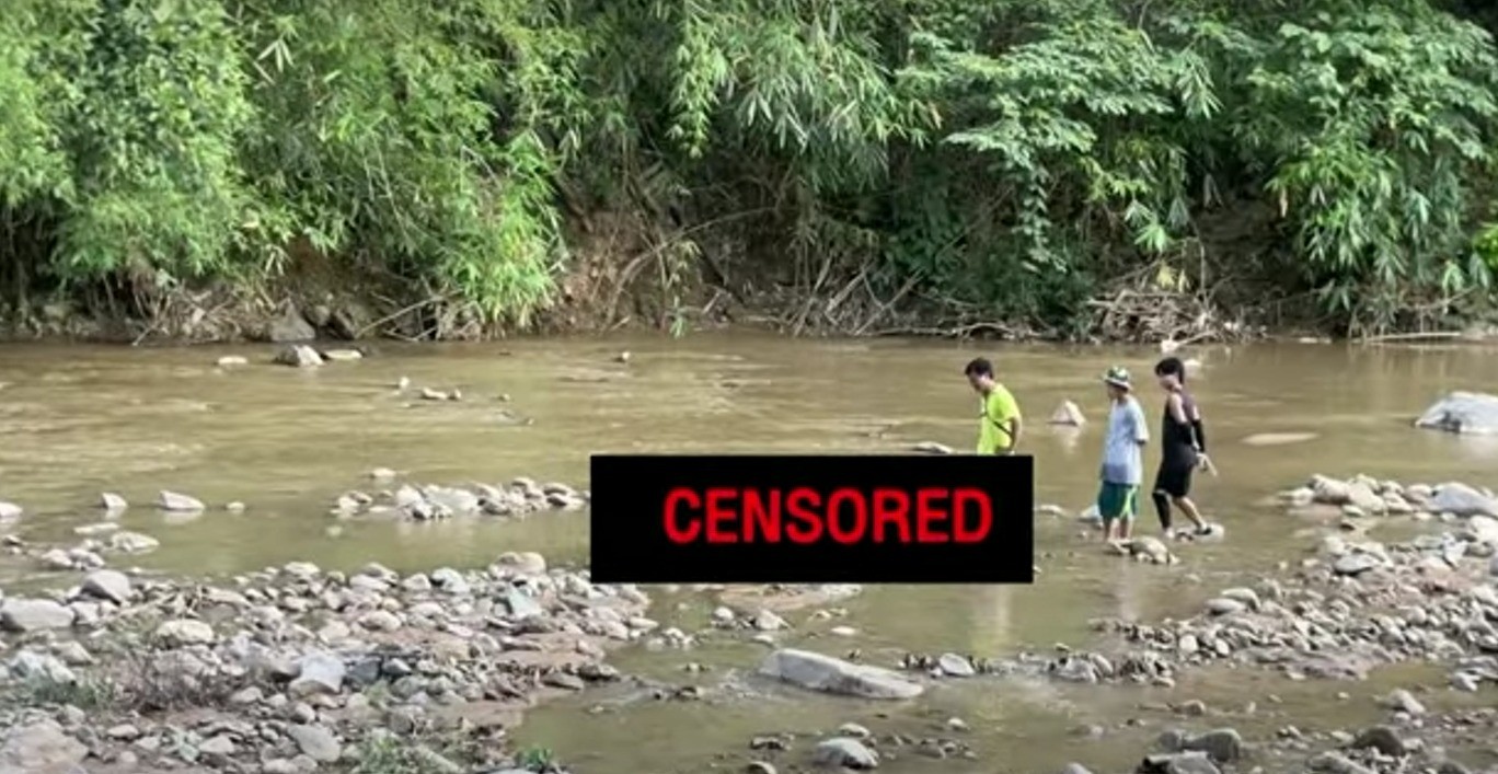 Thi thể bé Vanida được tìm thấy khoảng 500 mét phía hạ lưu của cây cầu, trong tình trạng vẫn còn nằm trong bao. (Ảnh: Workpoint News/YouTube)