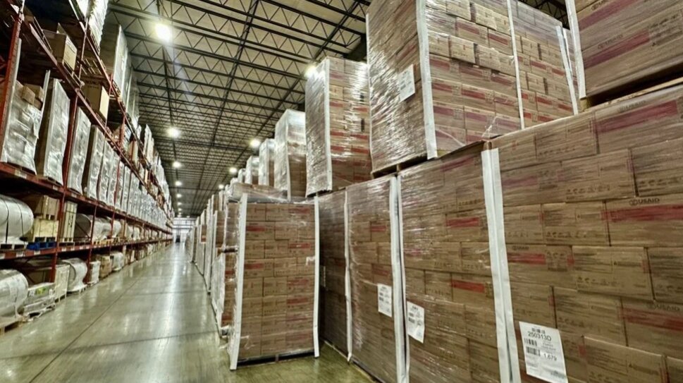 Những hộp Plumpy'Nut trong một nhà kho ở Rhode Island sau khi USAID cắt giảm tiền tài trợ buộc tổ chức phi lợi nhuận Edesia phải dừng các chuyến hàng. Ảnh: Edesia
