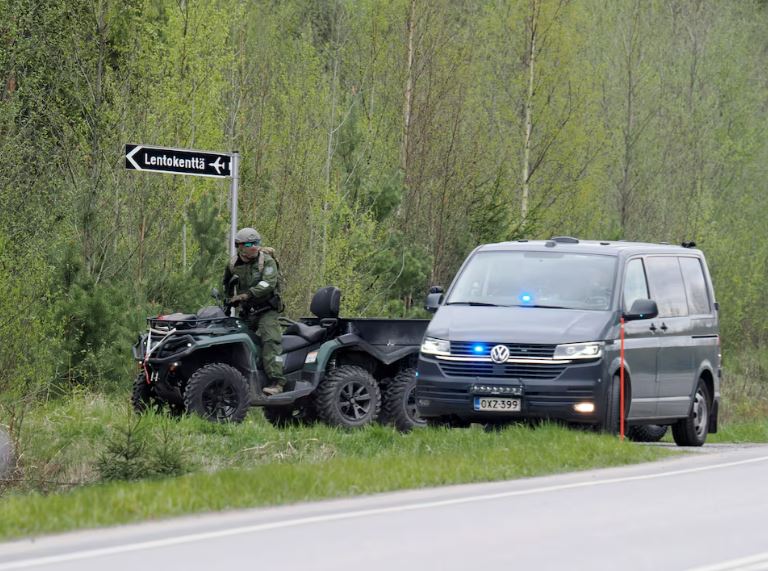 Một chiếc ATV vượt qua một xe cảnh sát để vào hiện trường vụ tai nạn gần Sân bay Eura ở Eura, Phần Lan, ngày 17/5/2025. Ảnh: Reuters