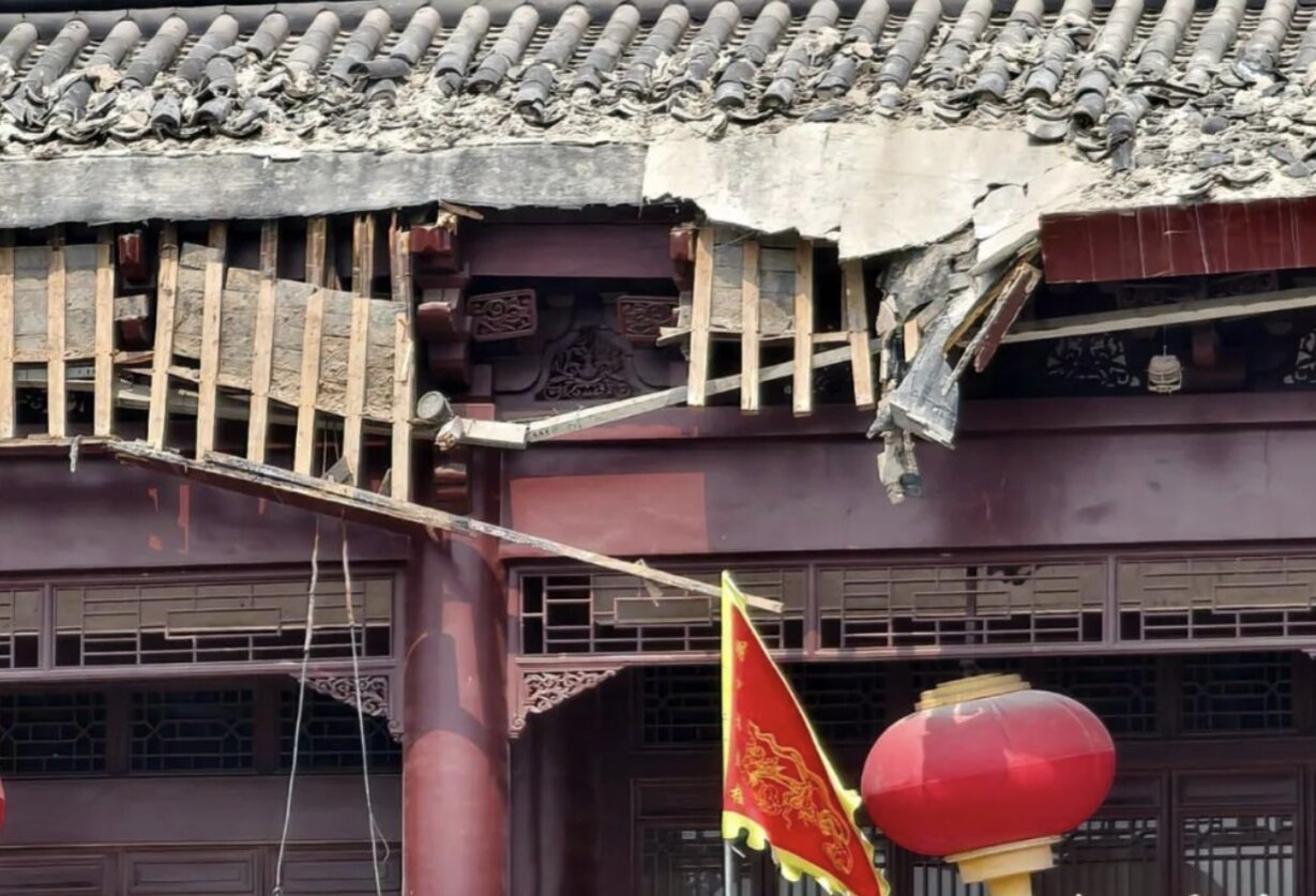 Ngày 20/5, phóng viên của Yangtze Evening News đã đến hiện trường và phát hiện ra rằng phần mái ngói rơi xuống là phần kiến trúc mới được trùng tu vào tháng 3/2024, tức là chỉ 14 tháng trước đó.