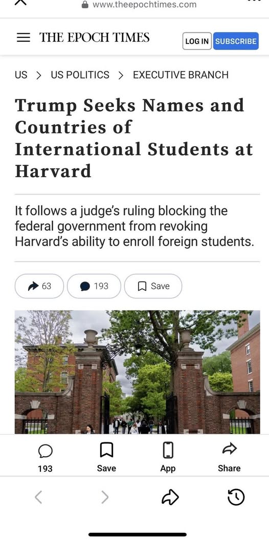 TT Trump yêu cầu Harvard cung cấp tên của các sinh viên quốc tế,