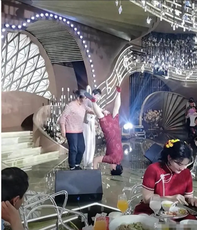 Theo đoạn video lan truyền, trong ngày vui của con trai, người mẹ mặc sườn xám đỏ bước lên sân khấu với tinh thần vui vẻ, hạnh phúc. Nhưng thay vì chúc phúc hay khiêu vũ nhẹ nhàng, bà bất ngờ ở giữa sân khấu biểu diễn màn trồng chuối từ đầu đến cuối sân khấu.