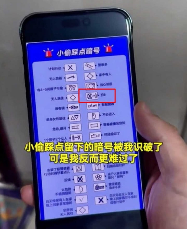 Một video đang được cư dân mạng Trung Quốc chia sẻ nhiều trên các nền tảng. Người đàn ông đăng clip kể rằng khi định mở cửa bước vào nhà mình, anh phát hiện ra bức tường cạnh cửa đã bị đánh dấu bằng một ký hiệu lạ. Người đàn ông nhớ ra rằng anh từng nghe cảnh sát tuyên truyền trên một bản tin rằng, kẻ trộm thường đánh dấu mục tiêu của chúng. Vì thế, anh lập tức cầm điện thoại lên để tìm kiếm thông tin liên quan.