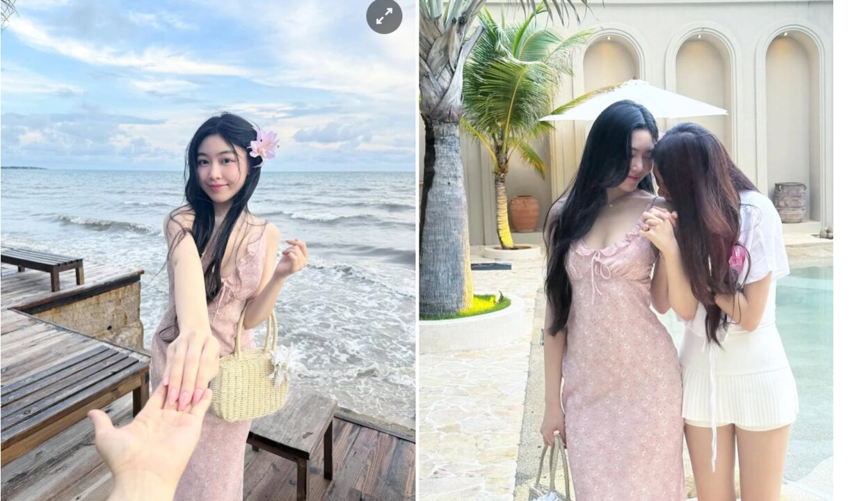 Trên trang cá nhân với gần 730.000 lượt theo dõi, Lọ Lem (tên thật: Mai Thảo Linh) chia sẻ bộ ảnh trong kỳ nghỉ dưỡng. Con gái Quyền Linh dạo biển với đầm hai dây, màu pastel nhã nhặn. Lọ Lem trang điểm nhẹ nhàng, cài hoa trên tóc.