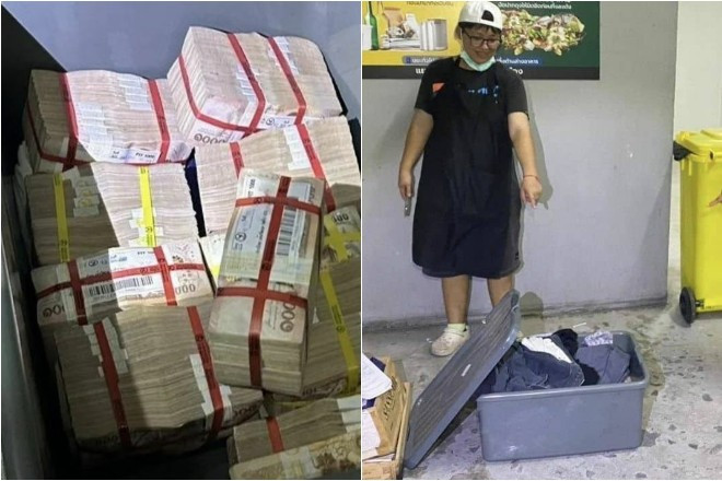Một người phụ nữ đã bất ngờ phát hiện chiếc hộp nhựa chứa số tiền mặt trị giá 12 triệu Baht (hơn 9,5 tỷ đồng) gần khu vực xử lý rác của khu chung cư.