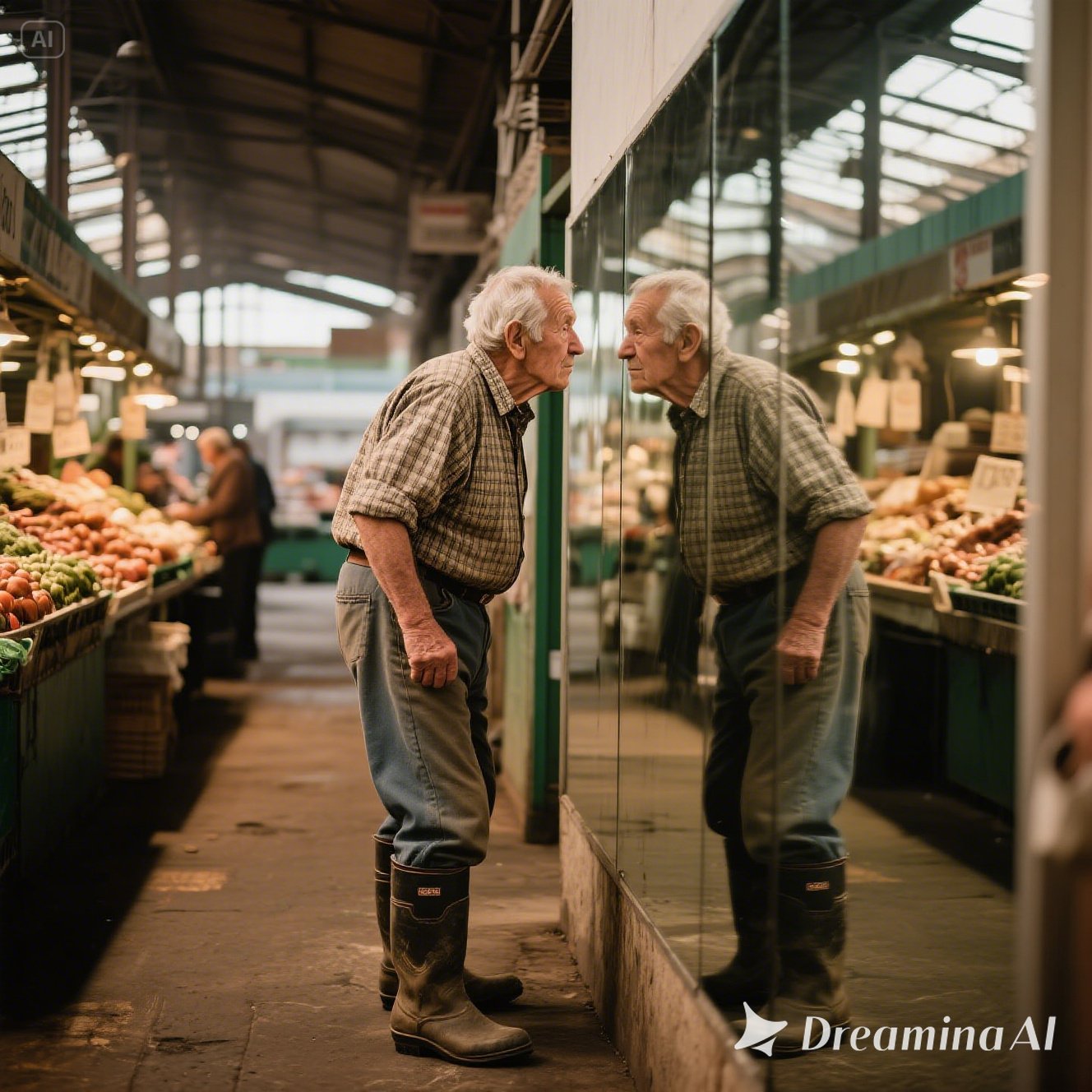 Một người đàn ông lần đầu đi chợ quê, thấy một tấm gương soi liền ngắm nghía. Thấy trong gương hiện lên khuôn mặt mình, ông thốt lên: